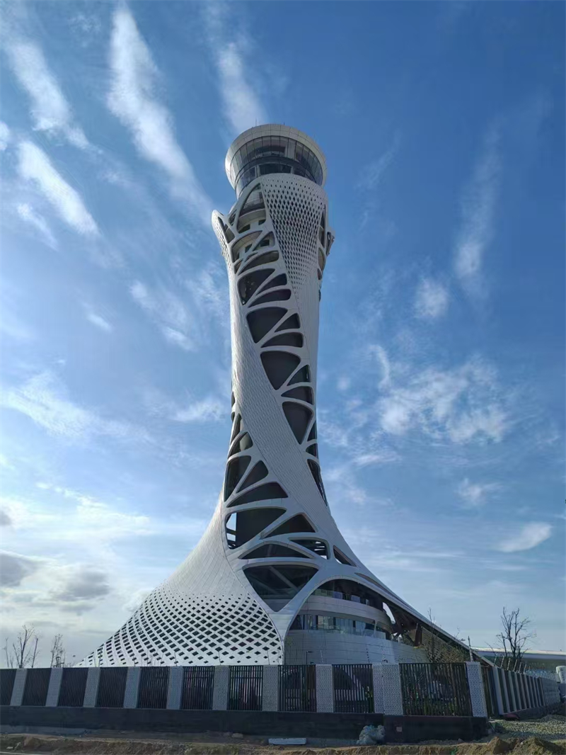 項目總投資13.43億元,塔臺建筑高度99.9米,是全國空管分局有史以來建設(shè)規(guī)模最大、投資最大的空管建設(shè)項目,創(chuàng)造了多項分局站建設(shè)第一。項目總體以“敦煌飛天”與“絲綢之路”為靈感,塔臺采用鋼結(jié)構(gòu)斜交網(wǎng)格外框+鋼筋混凝土核心筒設(shè)計,空管工作區(qū)采用鋼筋混凝土框架+首層BRB支撐+基礎(chǔ)橡膠隔震支座設(shè)計,鋼結(jié)構(gòu)總量達(dá)3561噸。