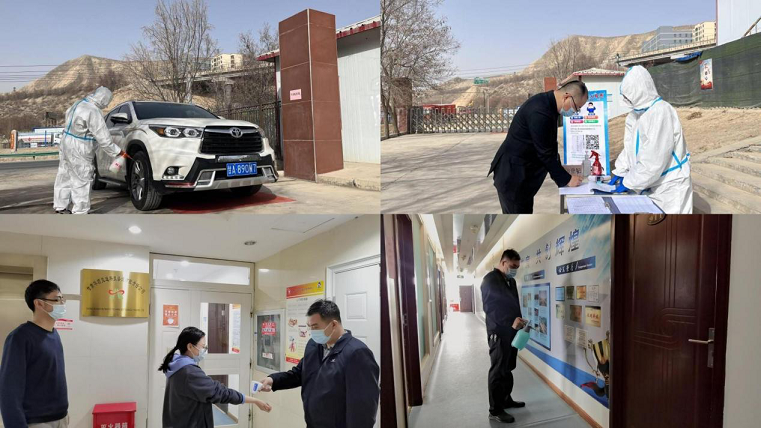 子公司機關(guān):每天對公共區(qū)域進行消殺,對進出人員實行查證、掃碼、測溫、登記管控措施。