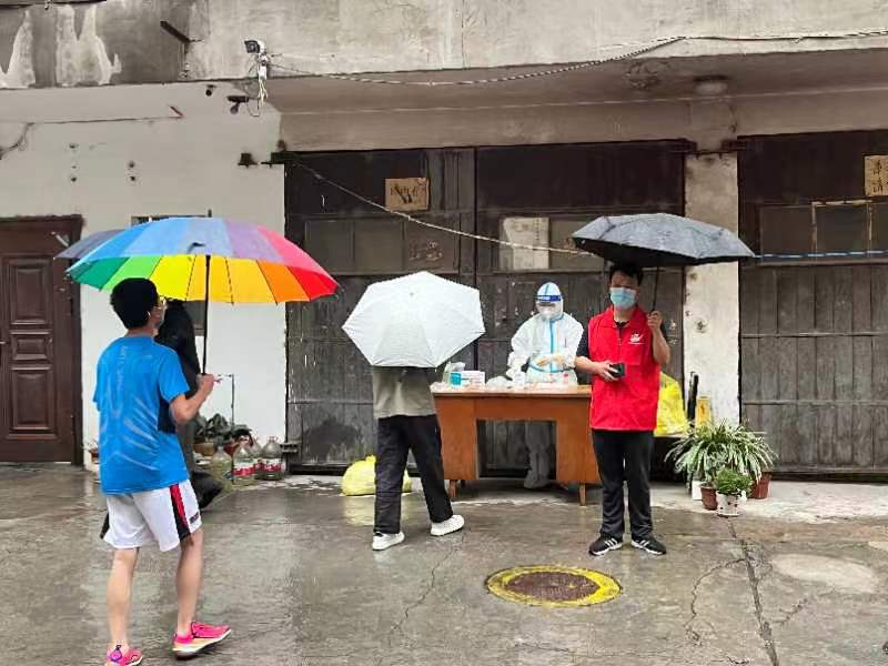 在高風險社區,規劃設計院第十六黨支部入黨積極分子劉偉正在執行“封門”任務?!耙唤拥酱_診通知,我們就要連夜對密接住戶施行管控措施,工作時間是24小時隨時待命,防護服穿脫太麻煩,累了我找地方靠一會兒就行?!睂O偉略帶疲倦地說道。高風險區意味著與病毒更近距離的接觸,對志愿者的規范操作要求也更加嚴格。每一次敲門、登記、核對人數、掃碼做核酸等看似簡單的流程,他都會在腦海里反復演練。突然的封門,會有一些居民鬧情緒,面對激烈的言辭,他總能耐心安撫,爭取居民對防控措施更多的理解和支持??臻e時,他會拎著大袋小袋,給住戶送些必備物資,提醒他們做好防護,做些力所能及的事情。勇者不孤,劉偉僅僅是這支隊伍中的一分子,還有像武利平、楊致遠、姚友龍、劉澤靖、孔利兵、巨斌、楊一、劉偉、滿子熠、李文磊、仲乃河、蘇曉文、魏翔等像他一樣的志愿者,正在社區疫情防控一線,默默地貢獻著自己的力量。他們有的是企業中層“一把手”,有的是建筑師,有的是規劃師,有的是財務管理人員……,但穿上白色的防護服、換上紅色的馬甲,他們就有了一個共同的名字——疫情防控志愿者。