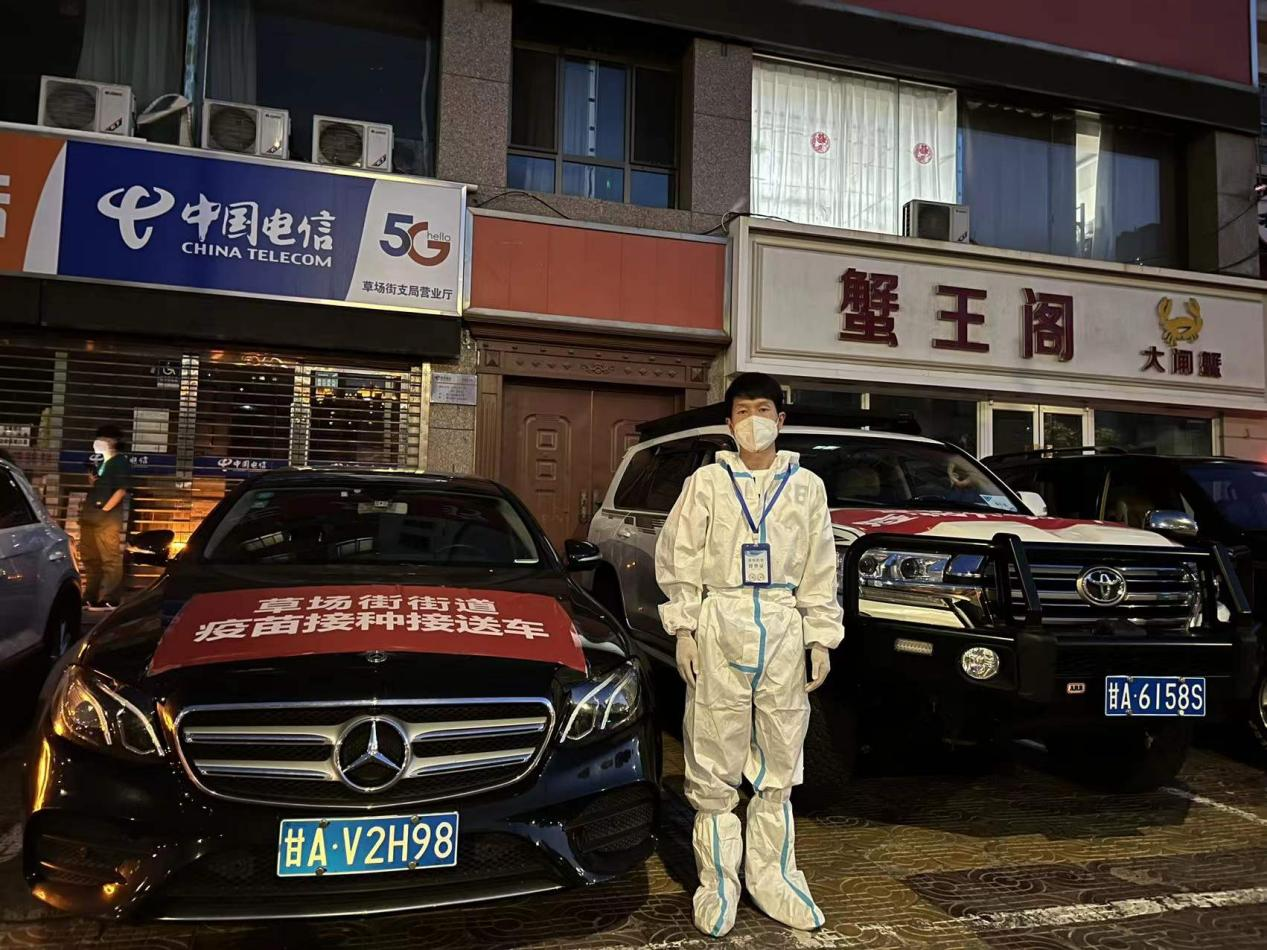 張文慶作為草場街街道愛心車隊的“老司機”,他的任務就是每天開著私家車以“一個采樣點一輛車”的模式護送“大白”上下班,正常的工作時間是下午兩點到第二天凌晨兩點,如果遇到緊急情況,工作到天亮也是常有的事情?!搬t護人員非常辛苦,能為他們做點什么,我很開心”。每次接送任務結束后,張文慶都會對車輛進行認真地清洗和消毒,還會在車里準備一些礦泉水和小零食。接送中雖然看不到彼此模樣,但卻依然能夠感受到對方最真摯的微笑。危難時刻,許許多多的張文慶們為城市開辟了一條盡快恢復“煙火氣”的寶貴通道。