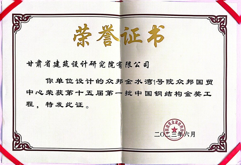 近日,從中國建筑金屬結構協會傳來喜訊,由省建筑設計院總建筑師、甘肅省工程勘察設計大師馮志濤領銜團隊設計的“眾邦國貿中心”榮獲“第十五屆第一批中國鋼結構金獎工程”榮譽稱號。