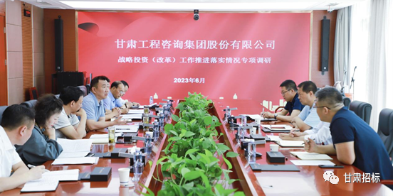 6月13日,甘肅工程咨詢集團黨委委員、副總經理劉立昱,董事會秘書柳雷,戰略投資部(改革辦)部長馬靈會一行到招標咨詢集團對戰略投資(改革)工作推進落實情況、董事會建設和運行情況開展專項調研。