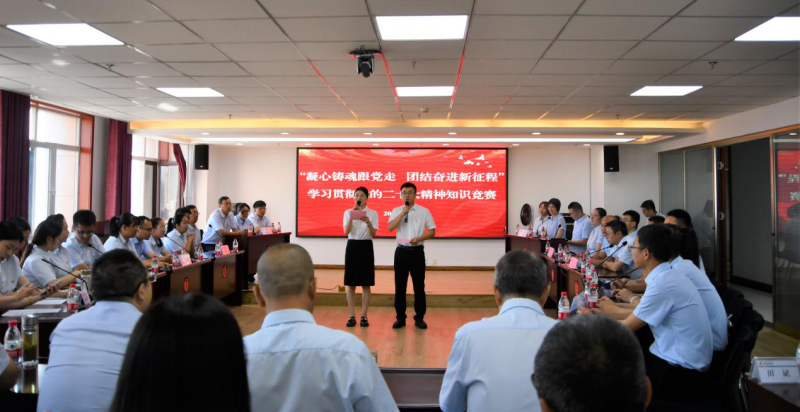 公司在家領導、機關全體干部職工、各事業部黨支部書記、黨務干事共計80余人參加了知識競賽。