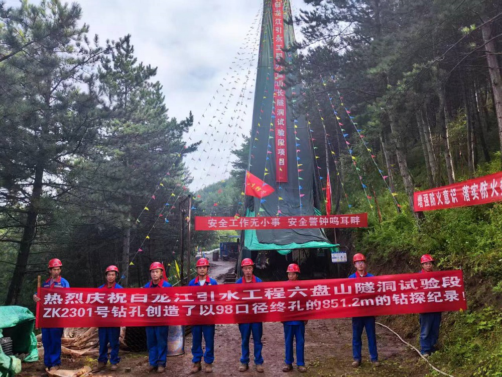 近日,省水電設計院勘探公司在白龍江引水工程六盤山長隧洞試驗段項目ZK2301鉆孔施工中,以98mm口徑順利完成851.2m鉆進任務,刷新了水電設計院在該口徑終孔鉆探原575m后最深紀錄,極大地提振了干部職工的雄心壯志。