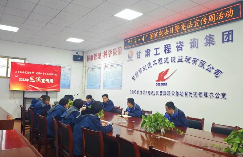 組織機關(guān)全體干部職工集體觀看《法護一生》宣傳片。各項目機構(gòu)緊密結(jié)合項目實際,通過擺放宣傳展板、發(fā)放宣傳手冊、開展憲法宣講等宣傳形式,向干部職工宣傳憲法及與群眾生產(chǎn)生活密切相關(guān)的法律法規(guī)知識。