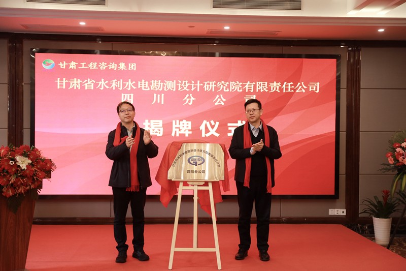 2月28日上午,甘肅省水利水電勘測設計研究院有限責任公司四川分公司揭牌儀式在成都舉行。甘肅省水利廳二級巡視員楊忠琪,甘肅工程咨詢集團黨委委員、副總經理茍海龍出席并講話。